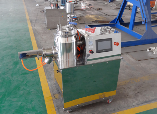 粉體物料與粘合劑在圓筒形容器中由底部混合漿充分混合成濕潤軟材,然后由側置的高速粉碎槳切割成均勻的濕顆粒。