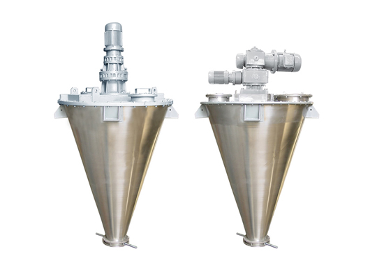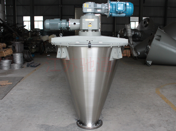 混合機根據物料性質、啟動方式、以及工藝要求配置不同功率、不同能力的驅動裝置。 雙螺旋錐形混合機裝載專用的雙輸出減速機組合箱,采用擺線針輪、齒輪、蝸輪蝸桿形式組合定制而成。