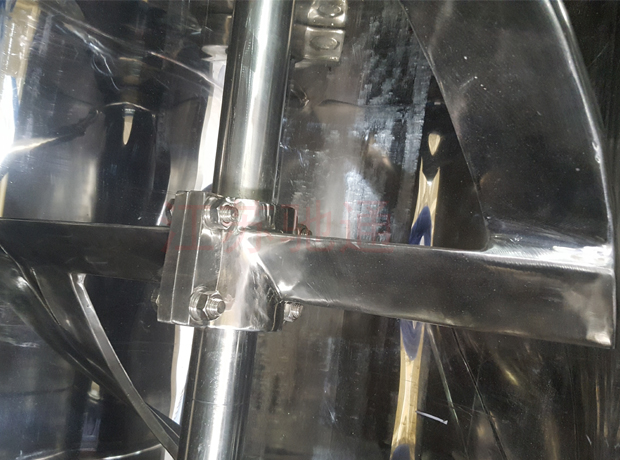 本機與物料接觸處均采用不銹鋼制造,槳葉與桶身間隙小,混合無死角,攪料軸兩端設有密封裝置,能防止物料外瀉。
